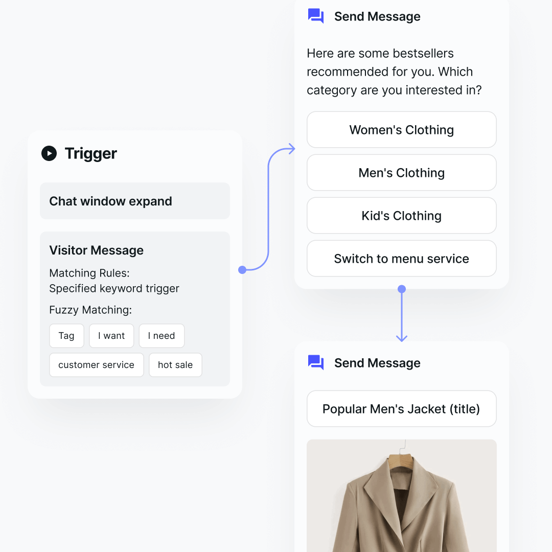 Use automation to categorize and assign customers based on their behavior and attributes. Set up smart auto-replies triggered by their interactions, organize them into targeted lists, and ensure seamless follow-ups. Tailor workflows to different scenarios and optimize automation.